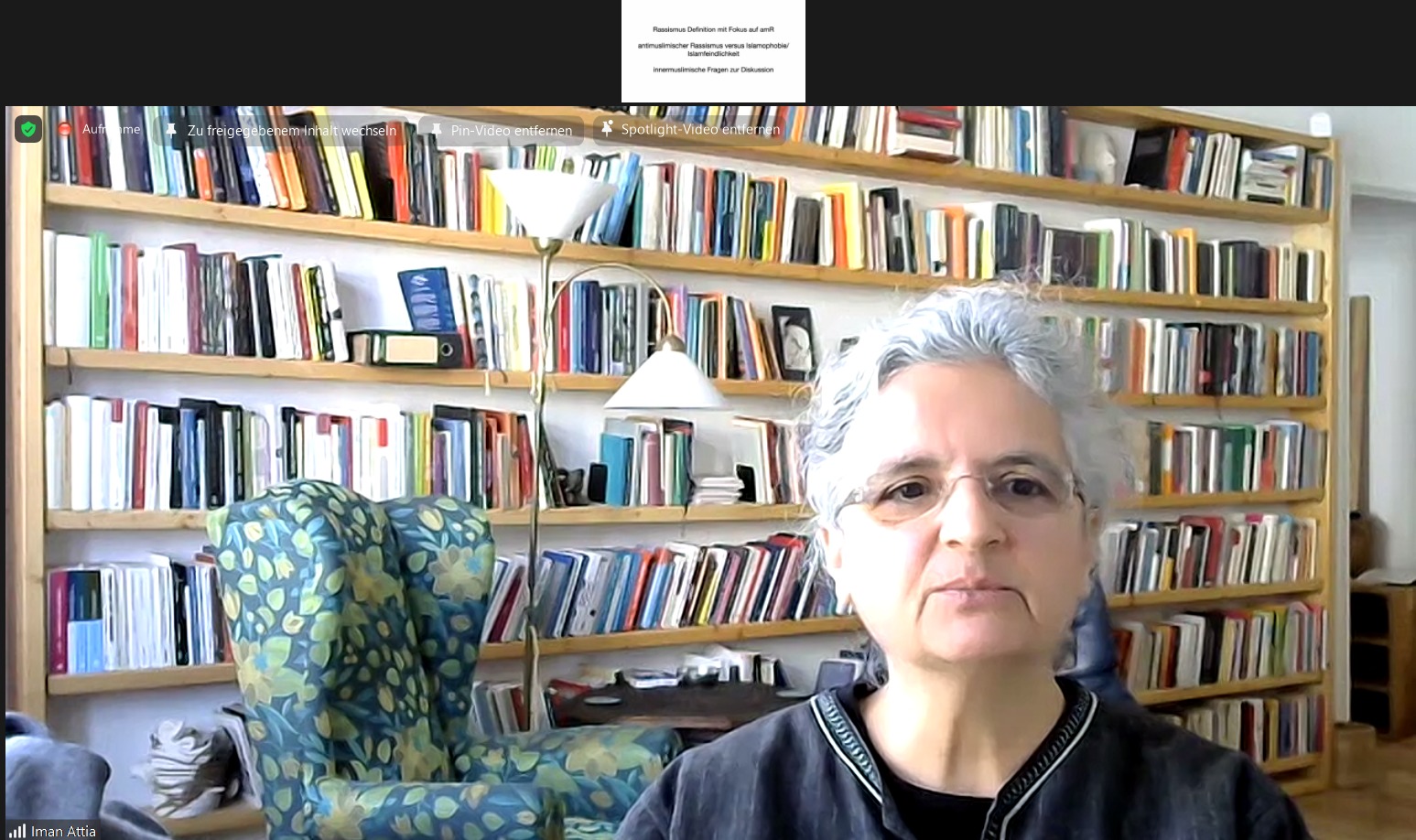 Prof. Dr. Iman Attia von der Alice Salomon Hochschule in Berlin nahm eine begriffliche Bestimmung des Begriffs „antimuslimischer Rassismus“ und ordnete es in den historischen Kontext Deutschlands ein. Am Beispiel der spanischen „Reconquista“ erklärte Attia die konzeptionelle Entstehung von Rassismus und wies auf Parallelen zwischen historischen und aktuellen Debatten, wie beispielweise den Vorwänden über die Illoyalität von jüdischen, romanischen und muslimischen Minderheiten, und neuzeitlichen und modernen Sicherheitsdiskursen.