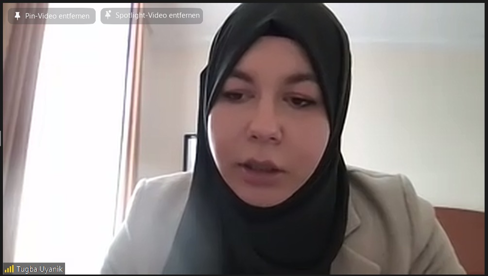 Die Rechtsanwältin für Arbeits- und Migrationsrecht Tuğba Uyanık hielt einen Vortrag über Diskriminierungs- und Rassismuserfahrungen muslimischer Frauen. Uyanık erklärte die Rechtslage, so den rechtlichen Diskriminierungsschutz und zu erwartende Rechtsfolgen und sprach Empfehlungen für verschiedene Lebensbereiche, wie der Arbeit, dem Wohnungsmarkt, der Schule und Freizeit aus.
