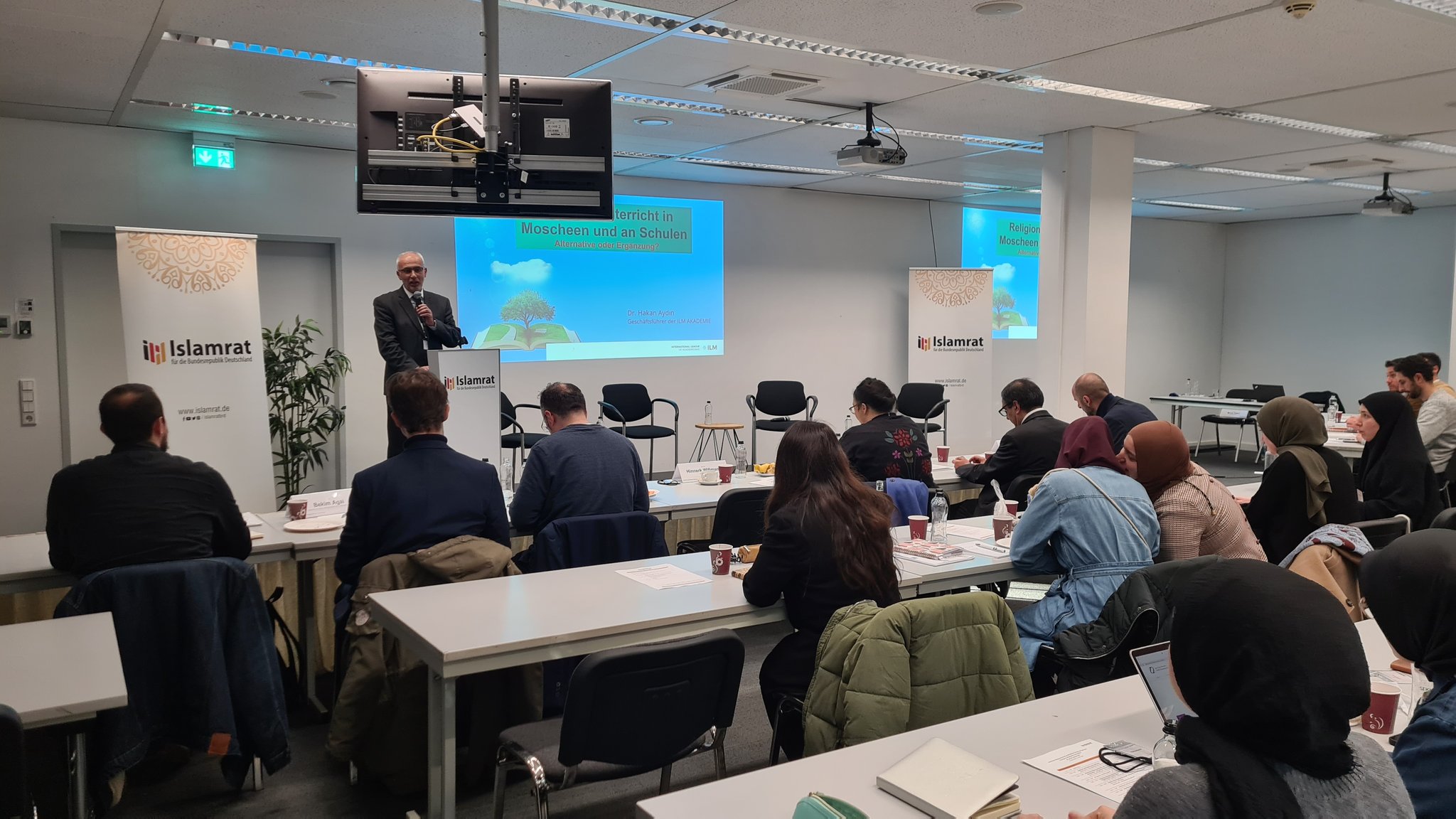 Dr. Hakan Aydın von dem ILM e.V. diskutierte in seinem Vortrag, ob Unterricht an Moscheen eine Alternative oder eine Ergänzung zum Religionsunterricht an Schulen darstellen könnte. Hierfür stellte er zunächst die Entwicklung des Moscheeunterrichts im Zuge der Migrationsbewegung nach Deutschland ab den 1970er Jahren dar und machte auf wesentliche Unterschiede zum islamischen Religionsunterricht an Schulen aufmerksam. Daraus schlussfolgerte er, dass dieser eine Ergänzung zur religiösen Lehre in Moscheen sei, bemerkte aber dazu, dass die Etablierung des islamischen Religionsunterrichts als auch der sich zunehmend pädagogisch und inhaltlich ausbauende Moscheeunterricht Entwicklungen seien, die auch für Muslime einen Lernprozess darstellten.